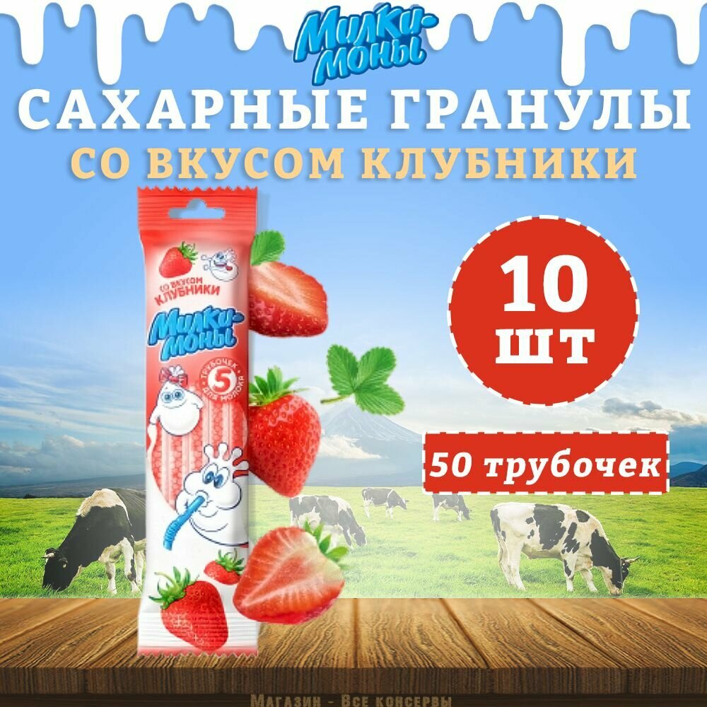 Трубочки для молока, вкус Клубники, Милкимоны, 10 шт интересное: