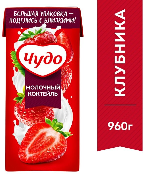 Молочный коктейль Чудо Клубника 2% 960 мл интересное: