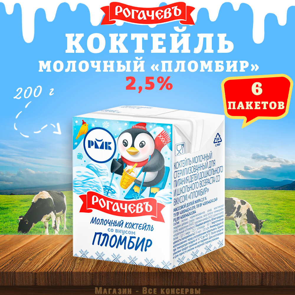 Молочный коктейль "Пломбир", 2,5%, Рогачев, 6 шт. по200 г интересное: