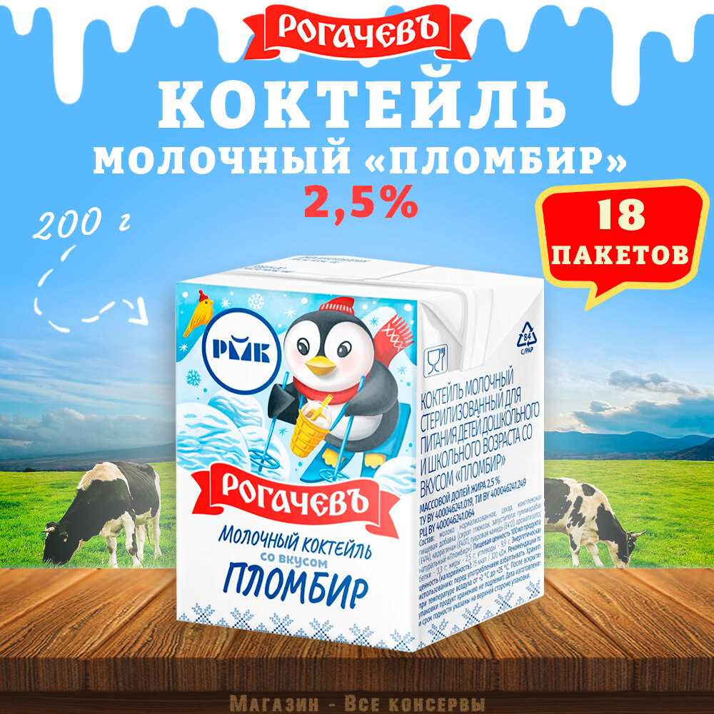 Молочный коктейль "Пломбир", 2,5%, Рогачев, 18 шт. по 200 г интересное: