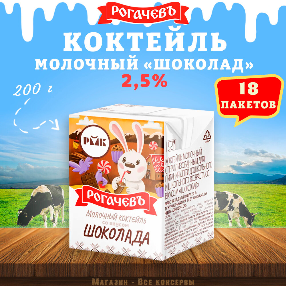 Молочный коктейль "Шоколад", 2,5%, Рогачев, 18 шт. по 200 г интересное: