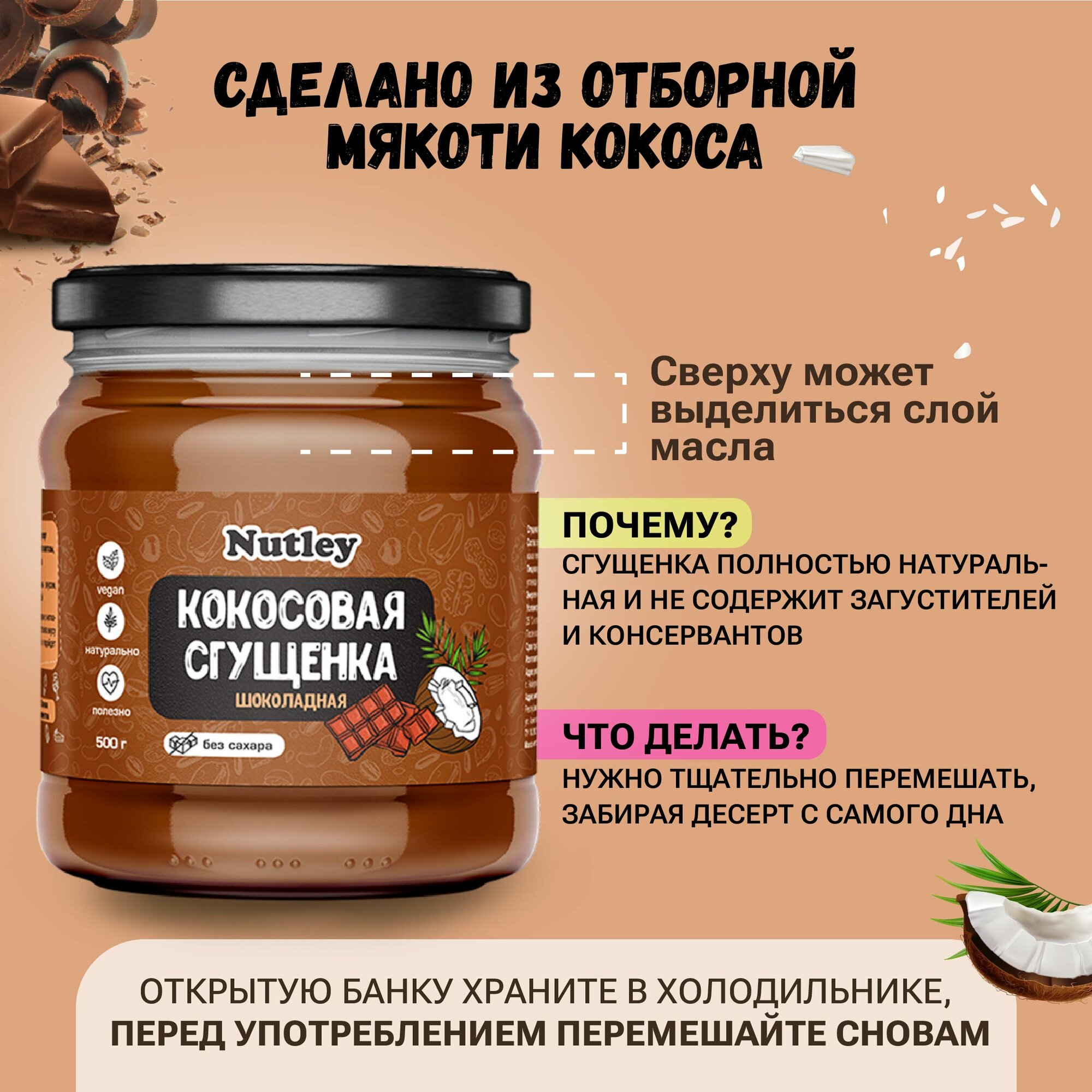 Сгущенка кокосовая шоколадная без сахара 500 г интересное: