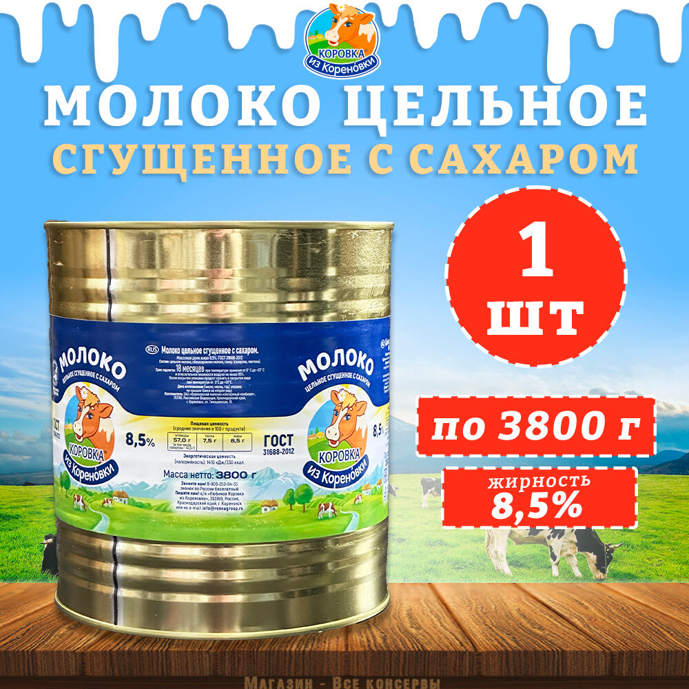 Молоко цельное сгущенное с сахаром 8,5%, ГОСТ, КизК, 1 шт. по 3800 г интересное: