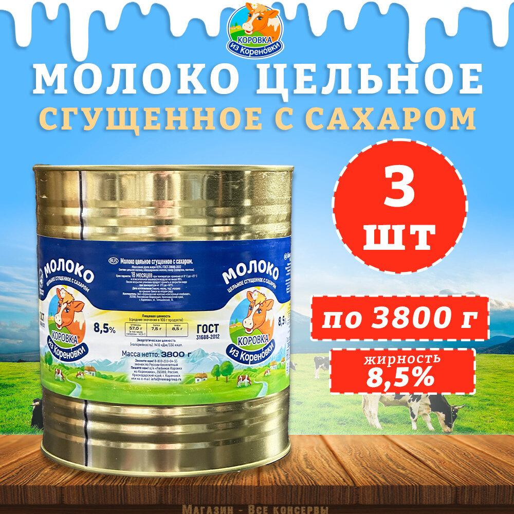 Купить Молоко цельное сгущенное с сахаром 8,5%, ГОСТ, КизК, 3 шт. по 3800 г