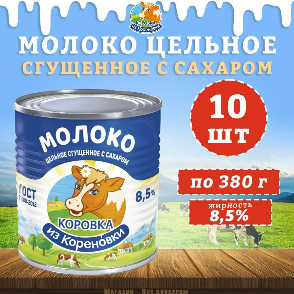 Купить Молоко цельное сгущенное с сахаром 8,5%, ГОСТ, КизК, 10 шт. по 380 г