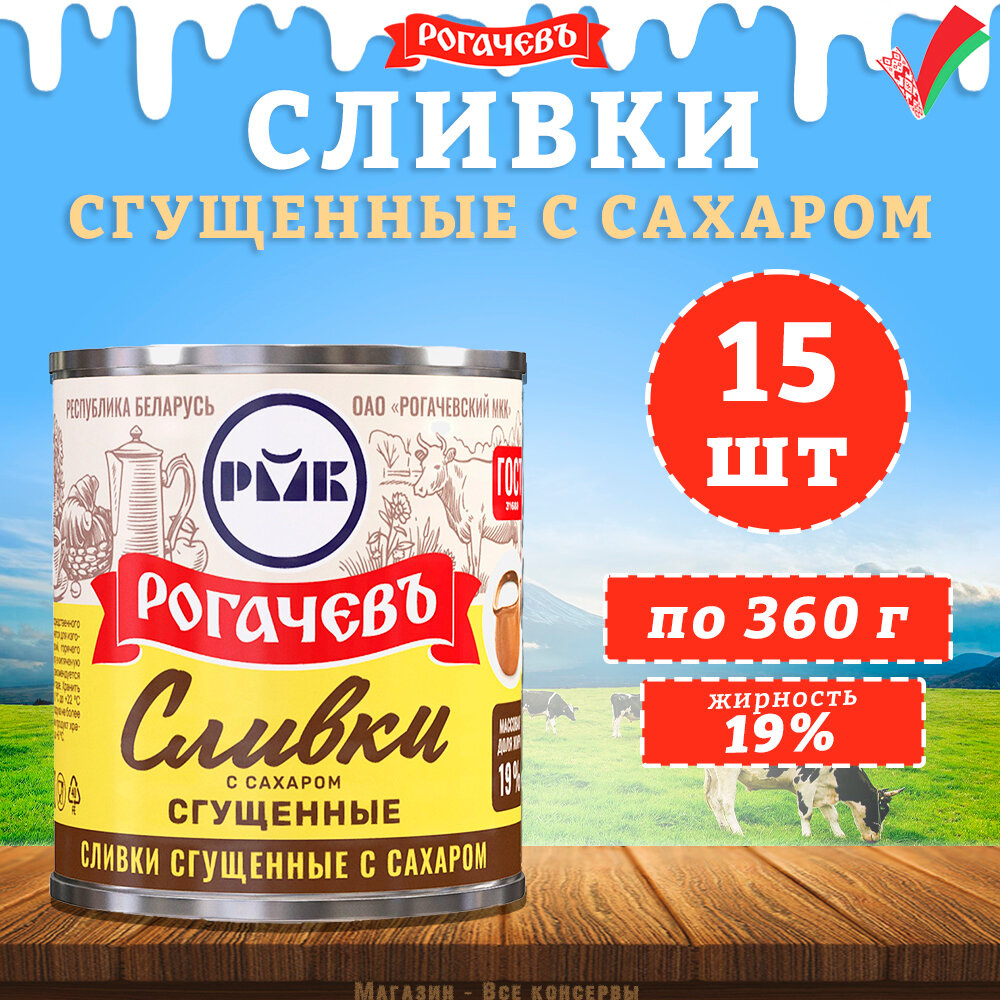 Купить Сливки сгущенные с сахаром, 19%, Рогачев, ГОСТ, 15 шт. по 360 г