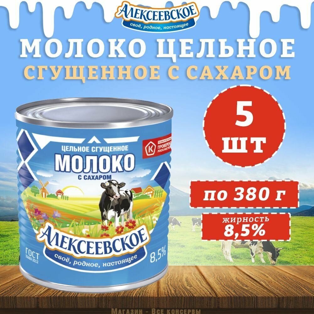 Купить Молоко цельное сгущенное с сахаром 8,5%, Алексеевское, 5 шт. по 380 г