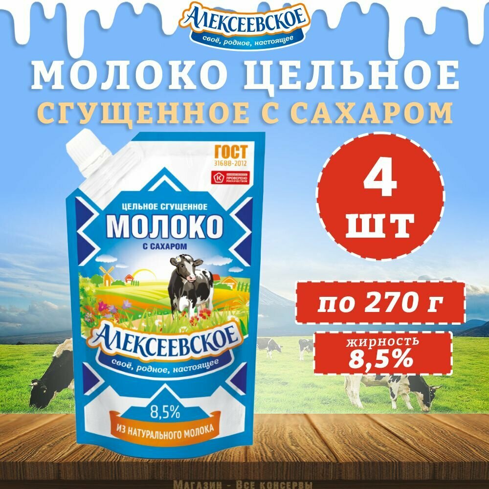 Купить Молоко сгущенное с сахаром 8,5%, дойпак, Алексеевское, 4 шт. по 270 г