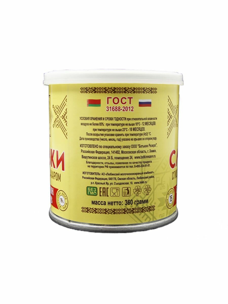 Сливки сгущенные с сахаром, Батькин резерв, ГОСТ, 1 шт. по 360 г