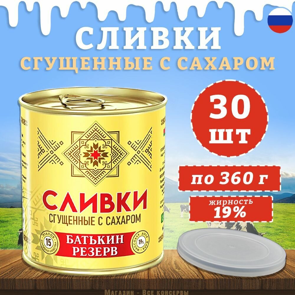 Сливки сгущенные с сахаром, Батькин резерв, ГОСТ, 20 шт. по 360 г