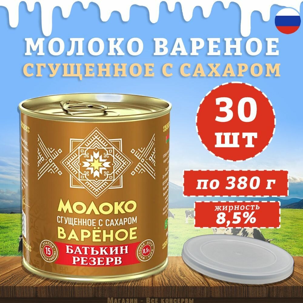 Купить Молоко вареное сгущенное с сахаром, Батькин резерв, ГОСТ, 30 шт. по 380 г