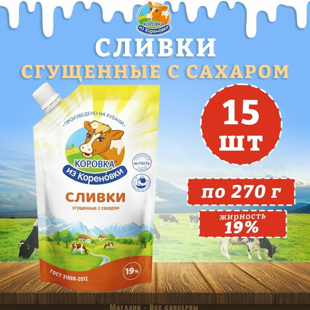 Сливки сгущенные с сахаром 19%, дойпак, КизК, 15 шт. по 270 г интересное: