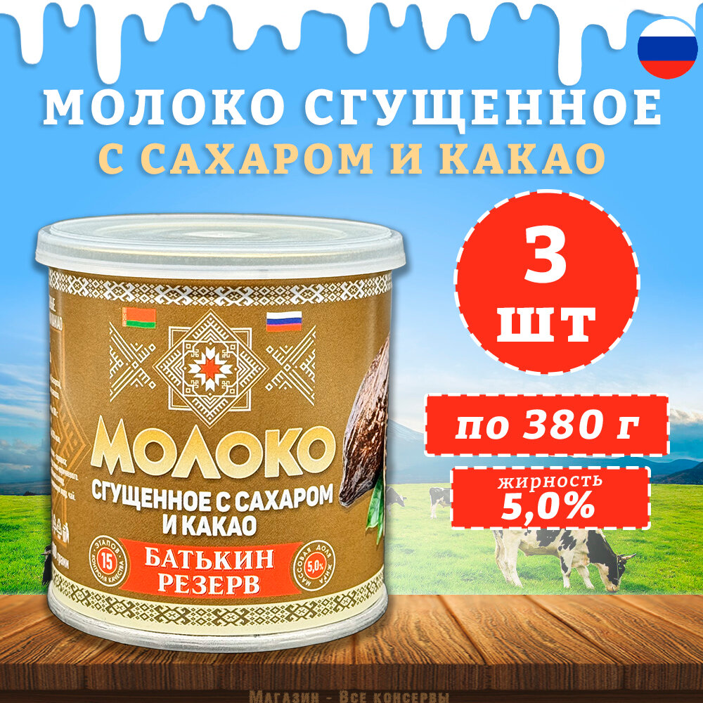 Купить Молоко сгущенное с сахаром и какао, Батькин резерв, 3 шт. по 380 г