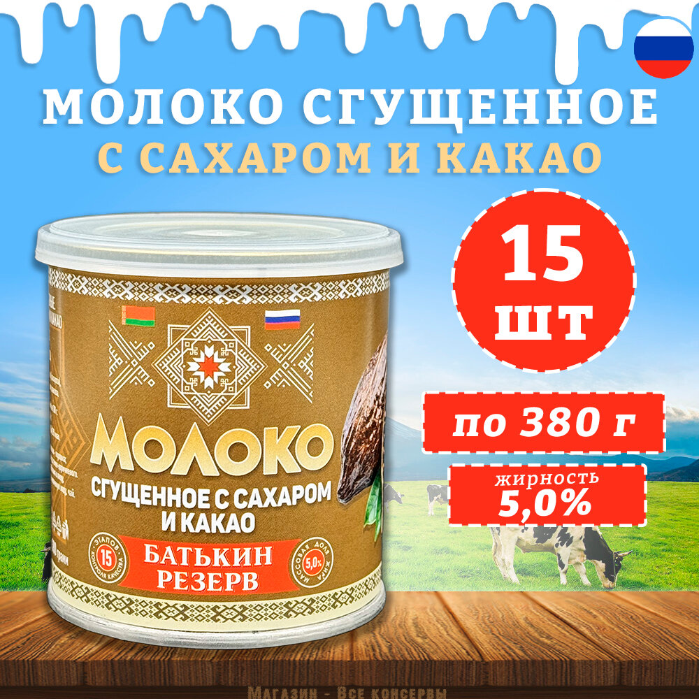 Купить Молоко сгущенное с сахаром и какао, Батькин резерв, 15 шт. по 380 г