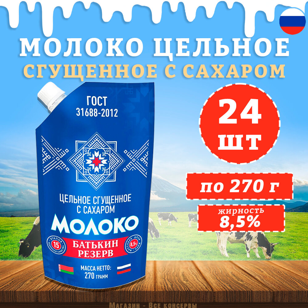 Молоко цельное сгущенное с сахаром, Батькин резерв, doy-pack, ГОСТ, 24 шт. по 270 г интересное: