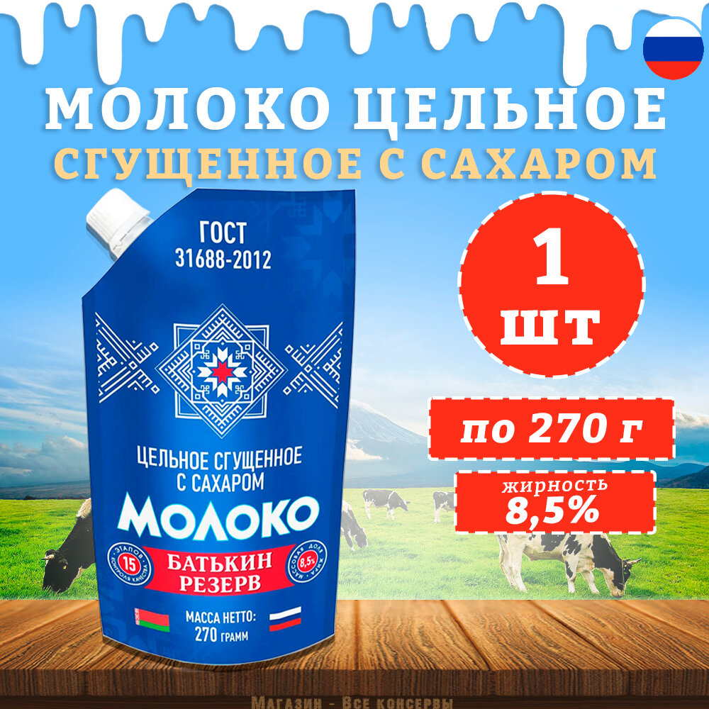 Молоко цельное сгущенное с сахаром, Батькин резерв, doy-pack, ГОСТ, 1 шт. по 270 г интересное: