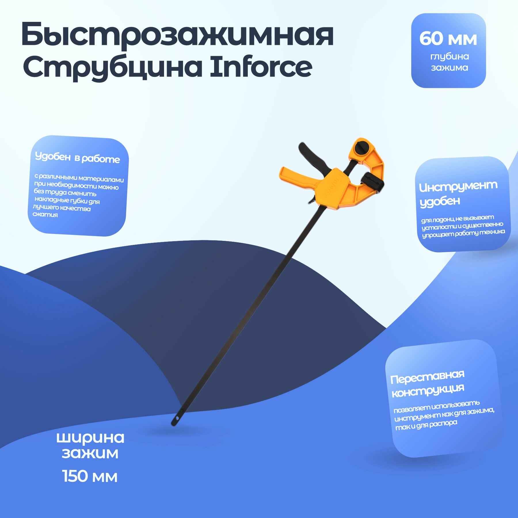 Inforce быстрозажимная струбцина 60х150мм 06-03-33 .