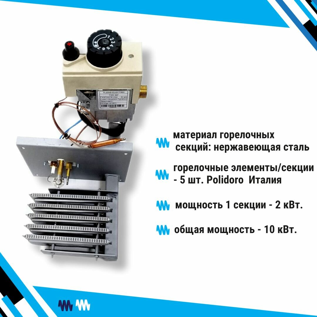 Купить Горелка газовая "Вега-2", панель "Секционная" 10 кВт. автоматика TGV 307 + секции Polidoro Италия 5 шт.