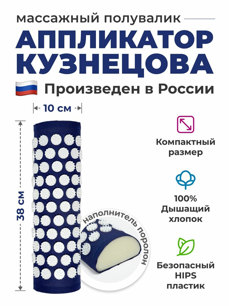 Аппликатор Кузнецова - массажный акупунктурный коврик для ног и валик в чехле (синий)