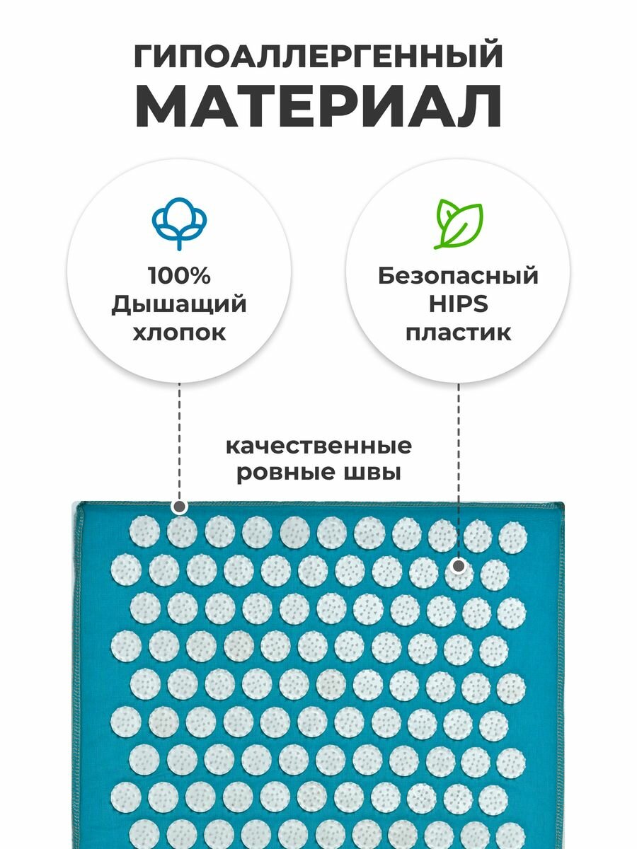 Массажный коврик Кузнецова для спины с иголками апликаторами, 40х55 см IGORAFIT, бирюзовый интересное: