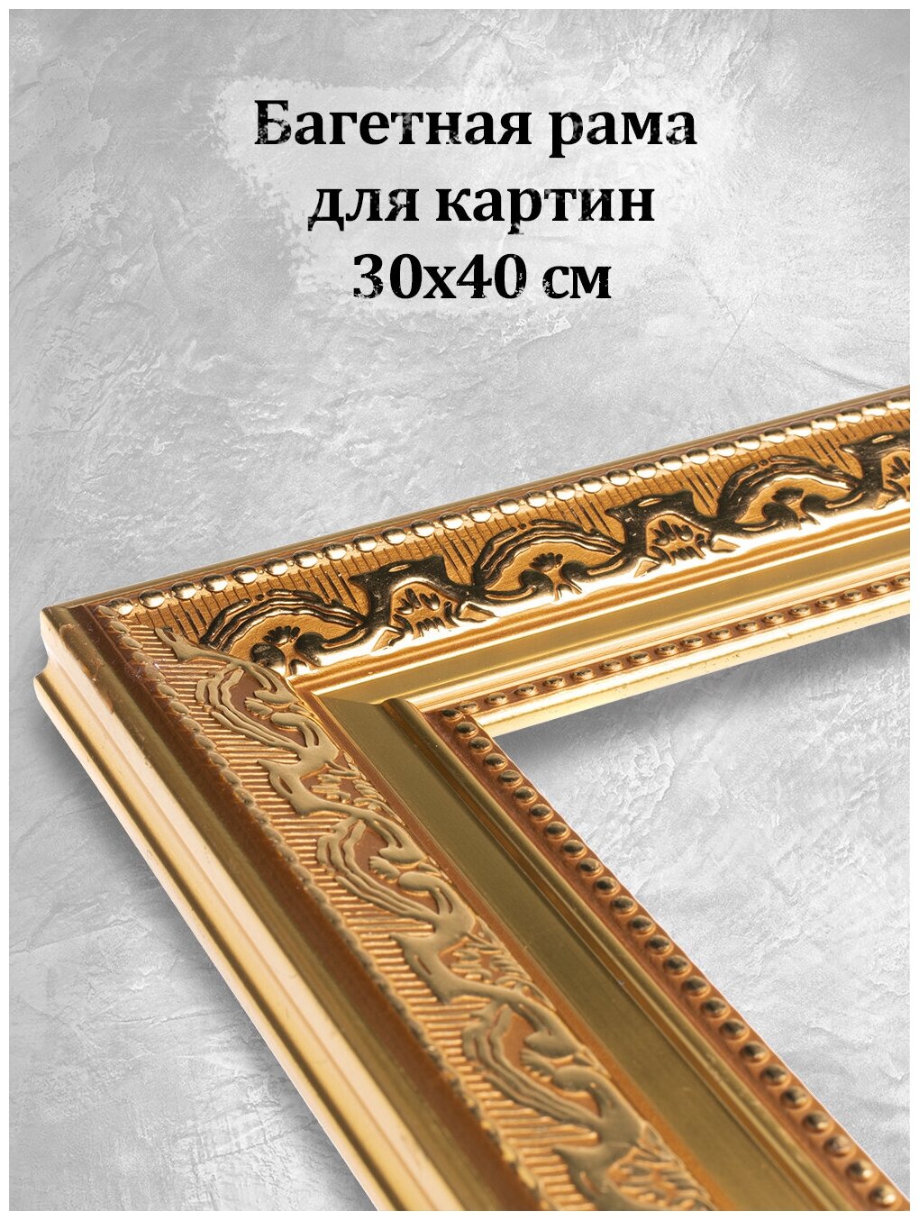 Багетная рама Art of Dream "Baroque" для картин 30х40 см / золотая с орнаментом / Пластиковый багет интересное: