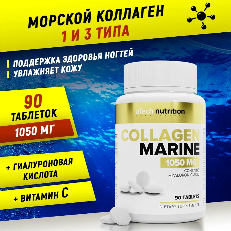 Морской коллаген + Гиалуроновая кислота и Витамин С/ Collagen Marine +HyalAcid+C , aTech nutrition 90 таблеток интересное: