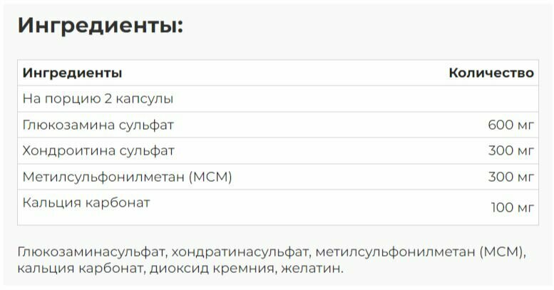 | Основной ингредиент | MCM / глюкозамин / хондроитин |