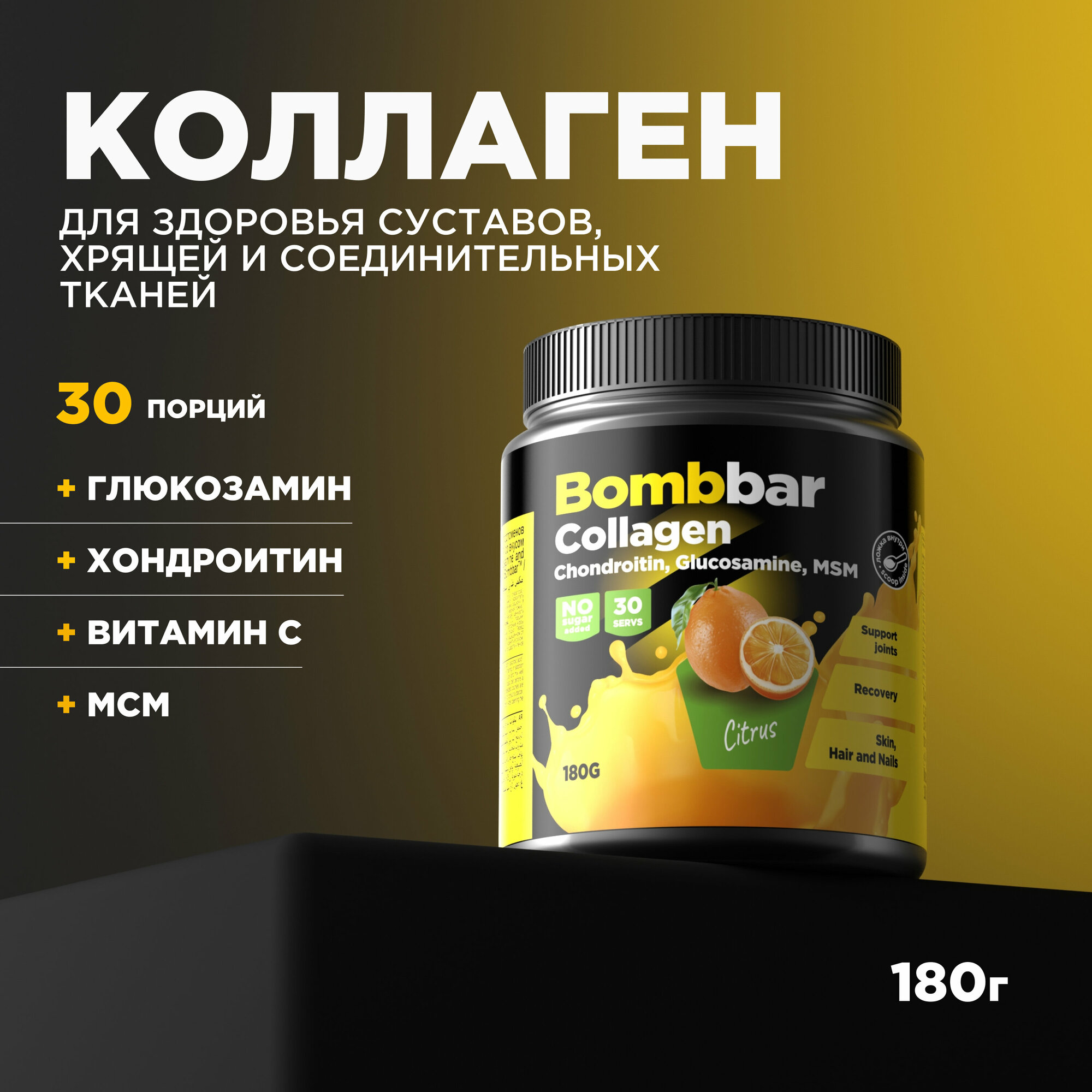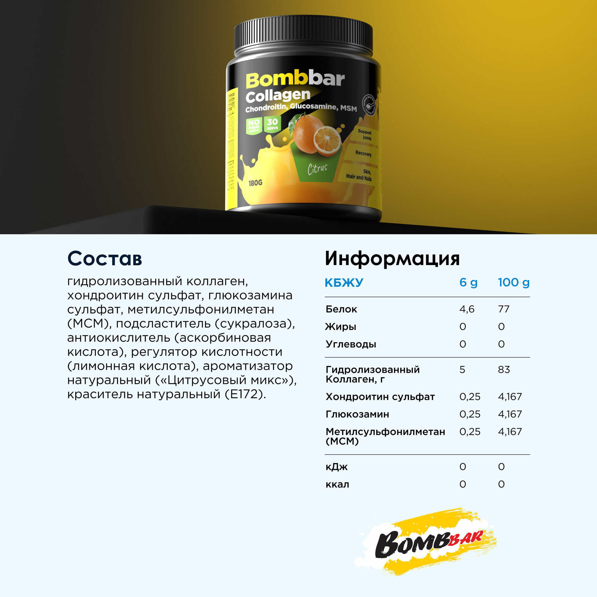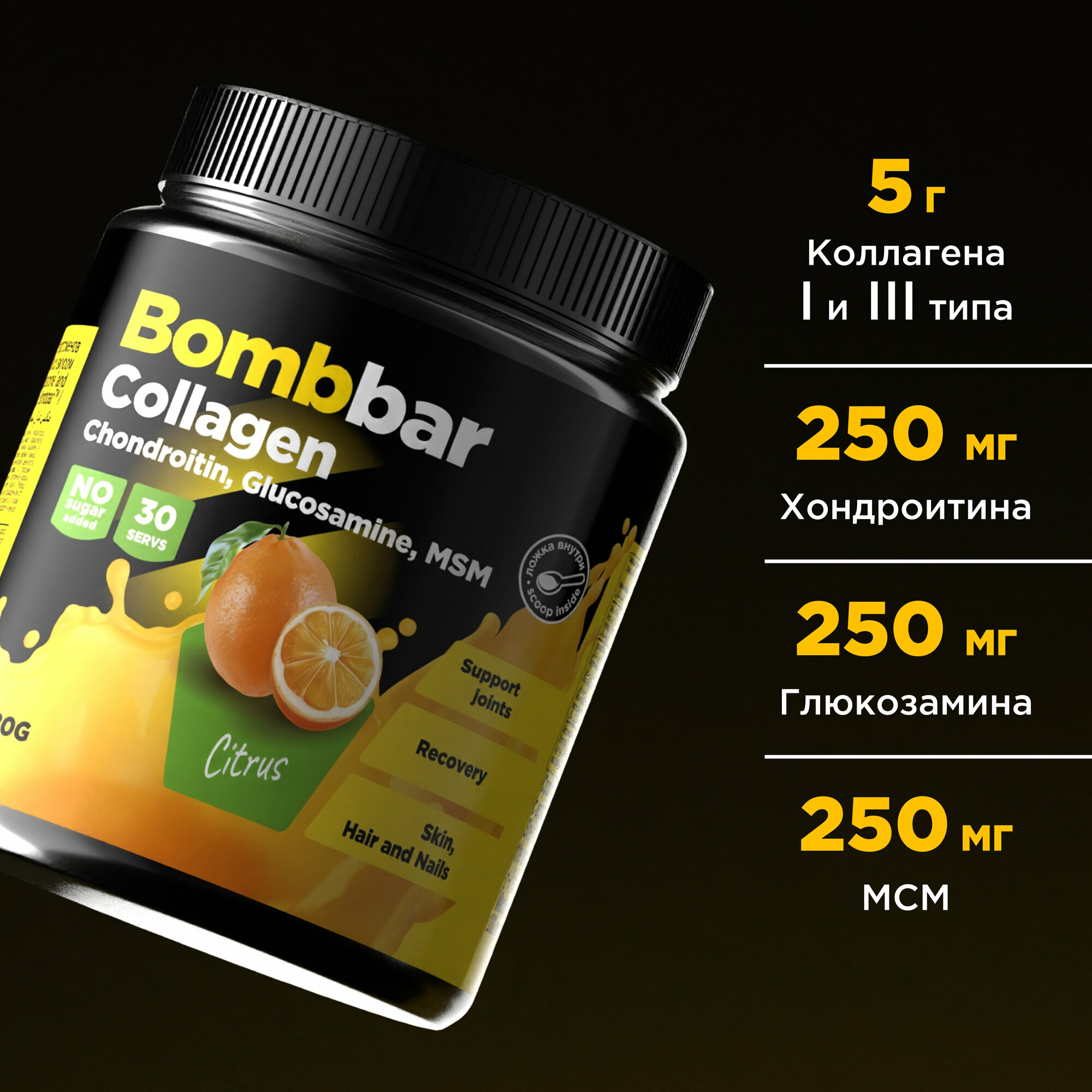 Bombbar Pro Collagen Коктейль без сахара Коллаген + Хондроитин + Глюкозамин + МСМ, порошок 180г