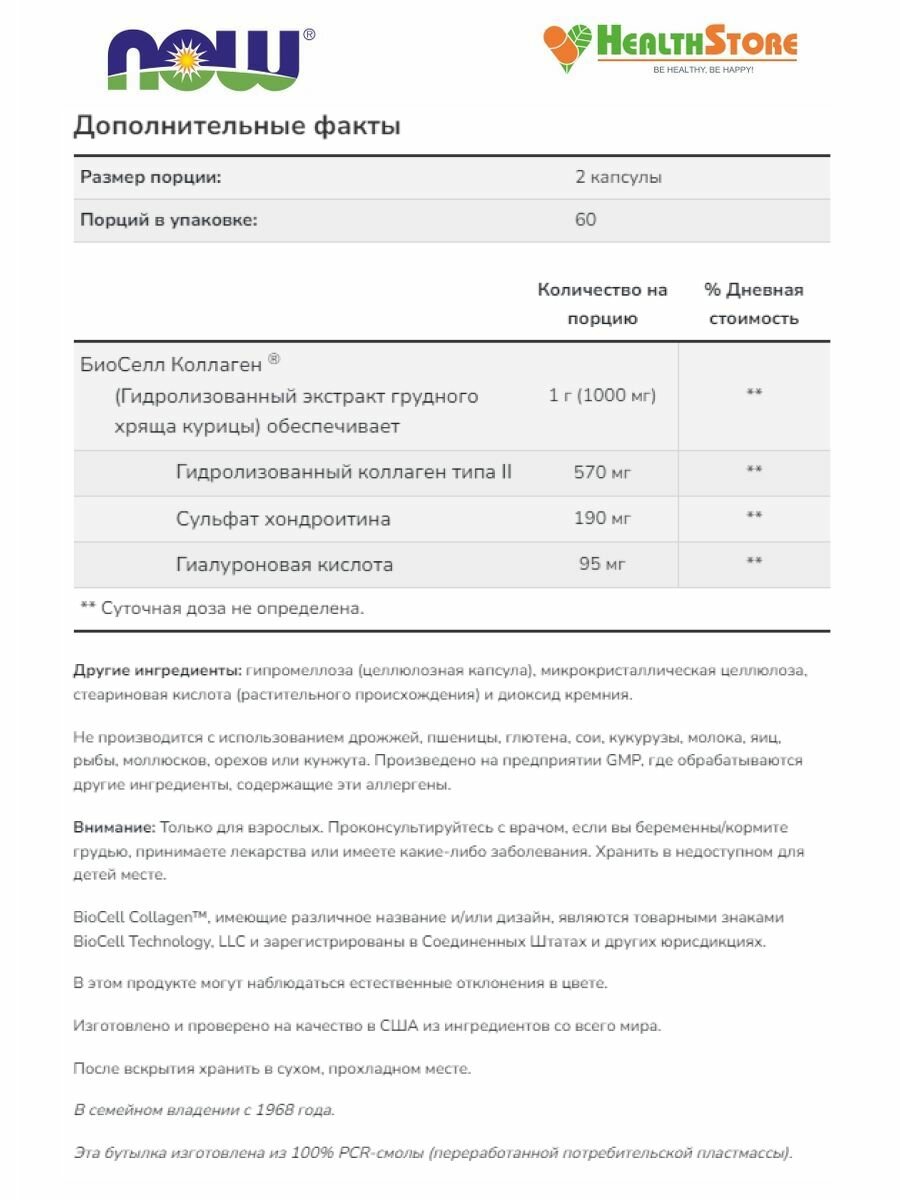 NOW BioСell Collagen Hydrolyzed Type ll 120 капсул Коллаген 2 типа БиоЦелл для суставов, Коллаген гидролизованный интересное: