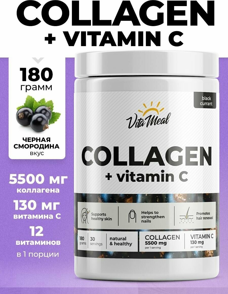 Коллаген порошок с витамином С VitaMeal Collagen + Vitamin C, 180 грамм, Черная смородина интересное: