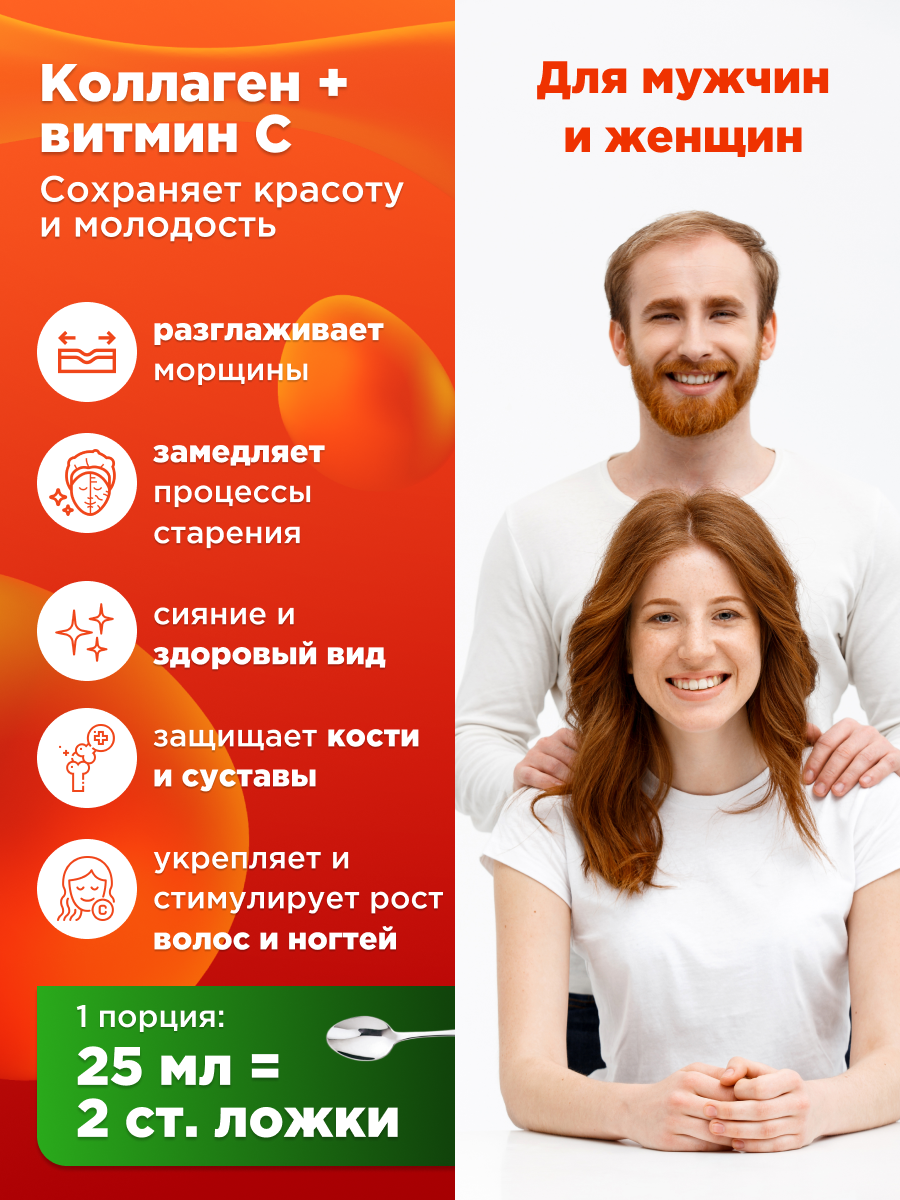 Коллаген 12500 мг с аминокислотами, витаминами для суставов и связок, Сollagen для лица кожи и волос, концентрат, вкус смородина апельсин, 1л