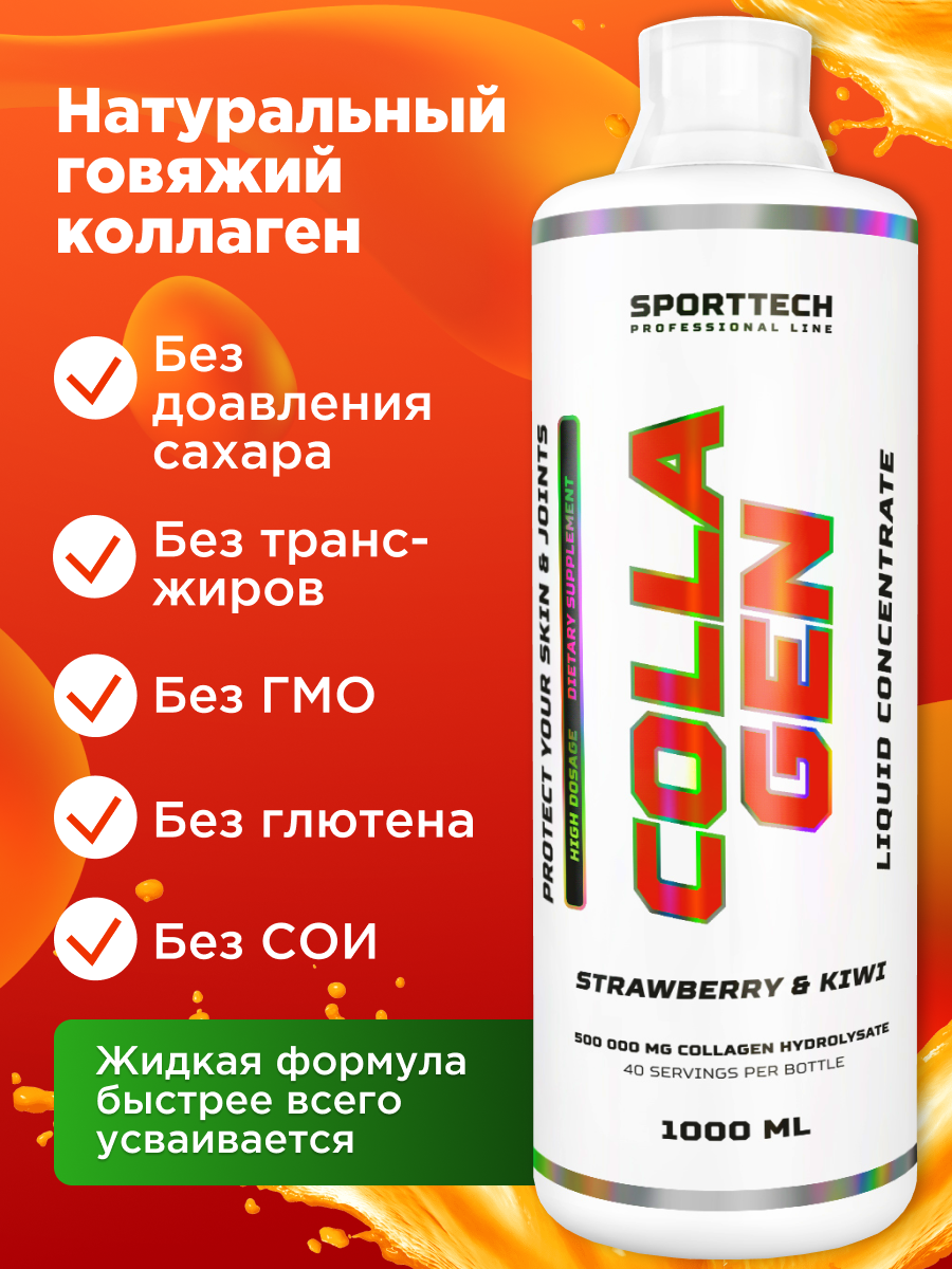 Купить Коллаген + витамины 1000 мл. клубника-киви SPORTTECH Collagen для суставов красоты здоровья кожи, волос и ногтей