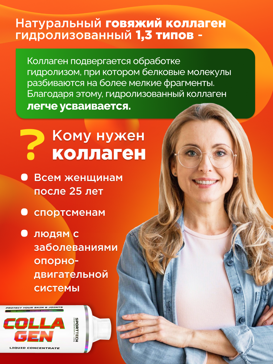 Коллаген + витамины 1000 мл. черн.смородина-апельсин SPORTTECH Collagen для суставов красоты здоровья кожи, волос и ногтей