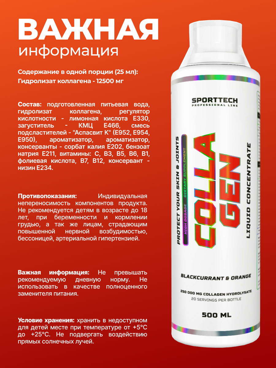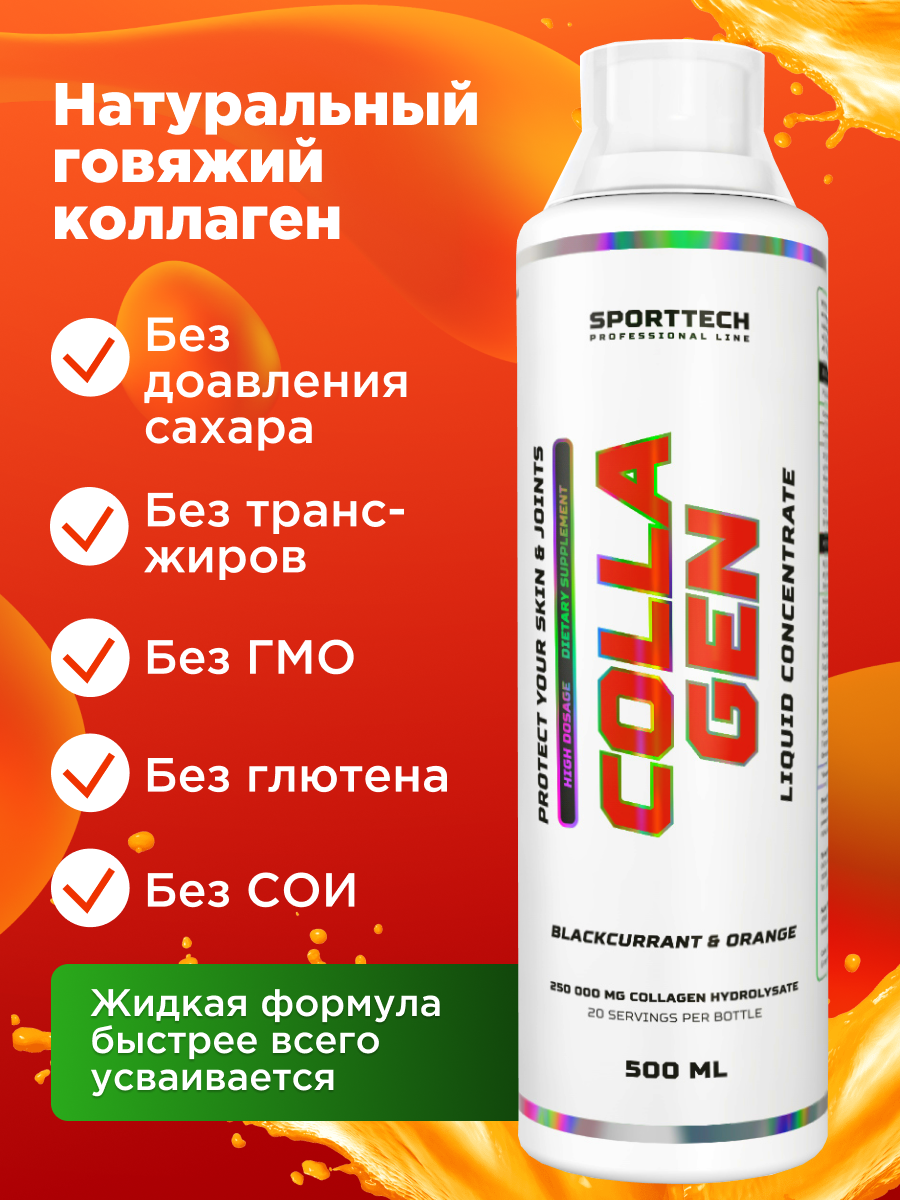 Купить Коллаген + витамины 500 мл. черн.смородина-апельсин SPORTTECH Collagen для суставов красоты здоровья кожи, волос и ногтей