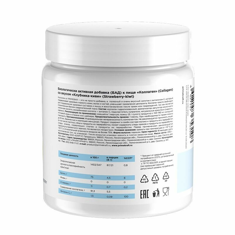 Купить Коллаген Prime-Kraft Collagen, 200 грамм, вкус: киви-клубника