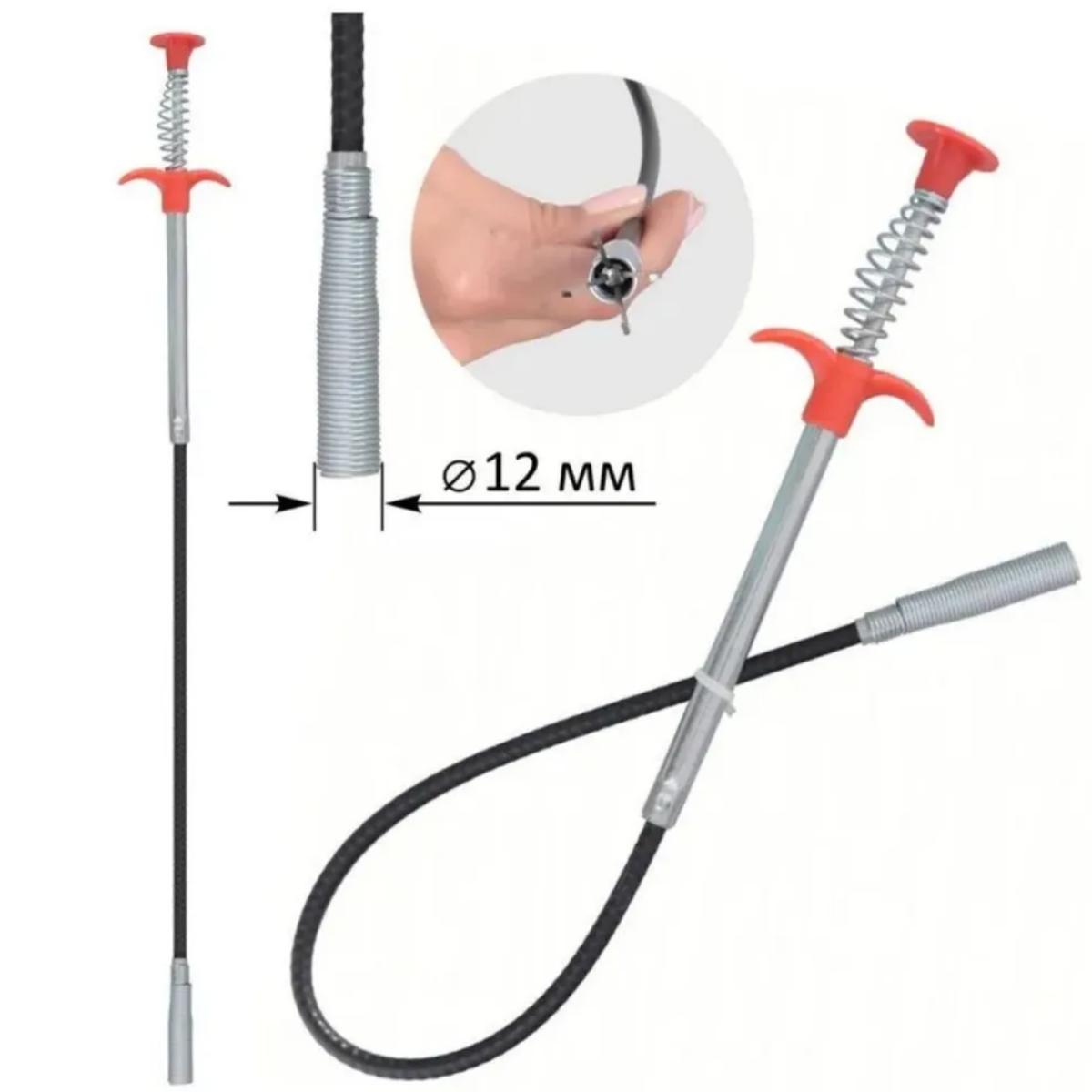 Трос для прочистки труб длина 60 см черный
