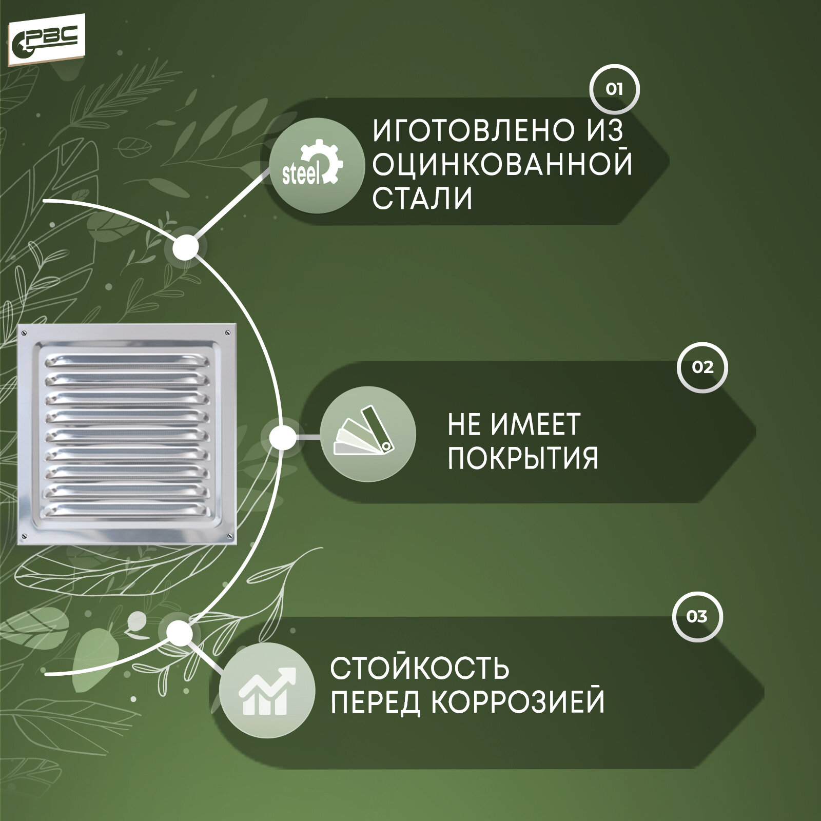 Решетка вентиляционная с сеткой от насекомых, РВМ 25 х 25 см, цвет "цинк"