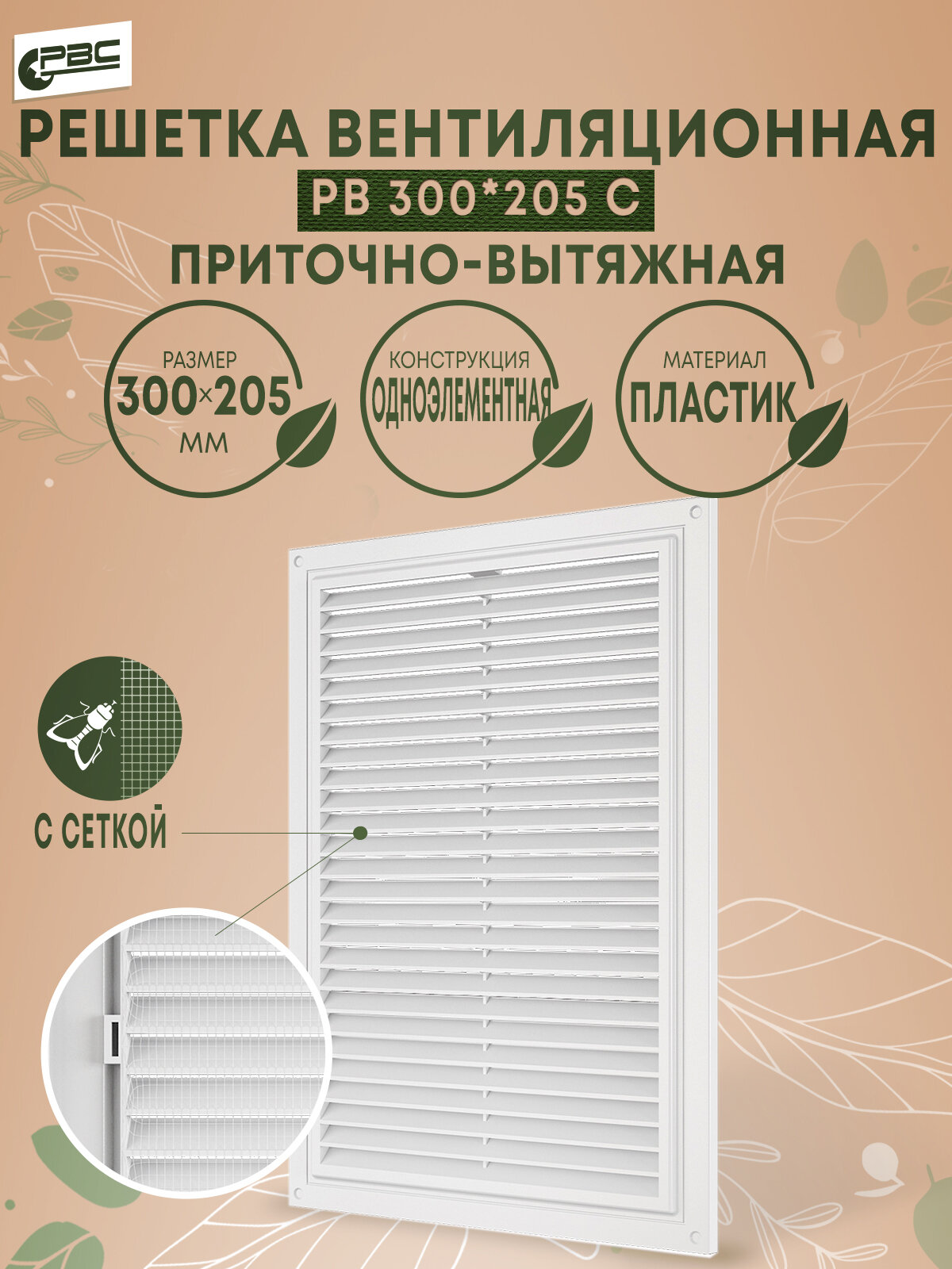 | Дополнительная информация | решетка; решетка вентиляционная: вентиляционная решетка с сеткой: москитная сетка; вентиляция: приточно-вытяжная |