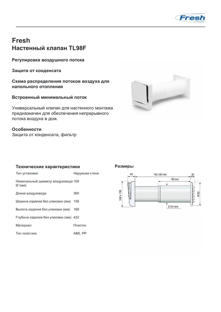 Шведский приточный клапан с регулятором расхода воздуха и фильтром, FRESH TL98F интересное: