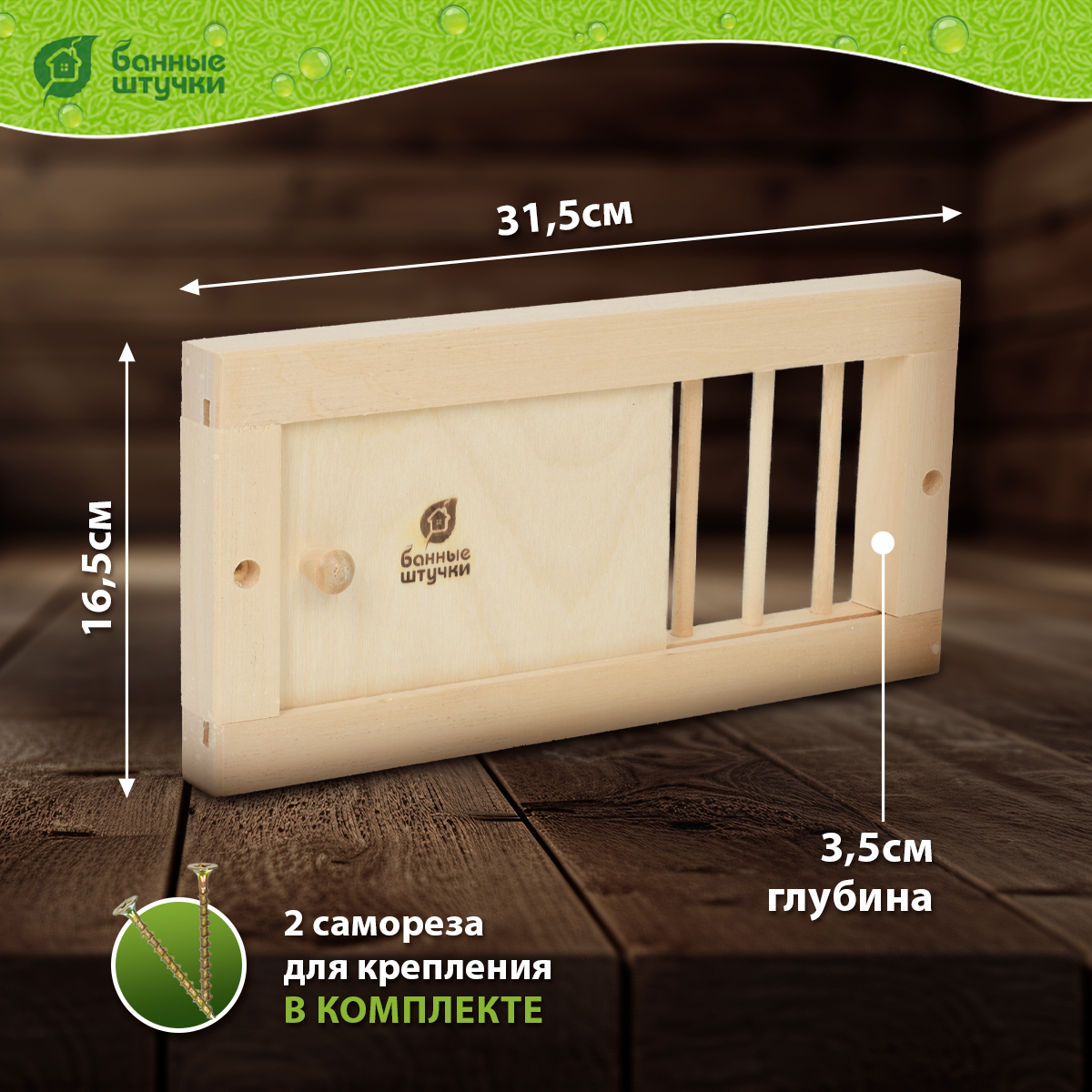 Вентиляционная решетка с задвижкой, 31,5х16,5 см, липа Класс Б "Банные штучки"