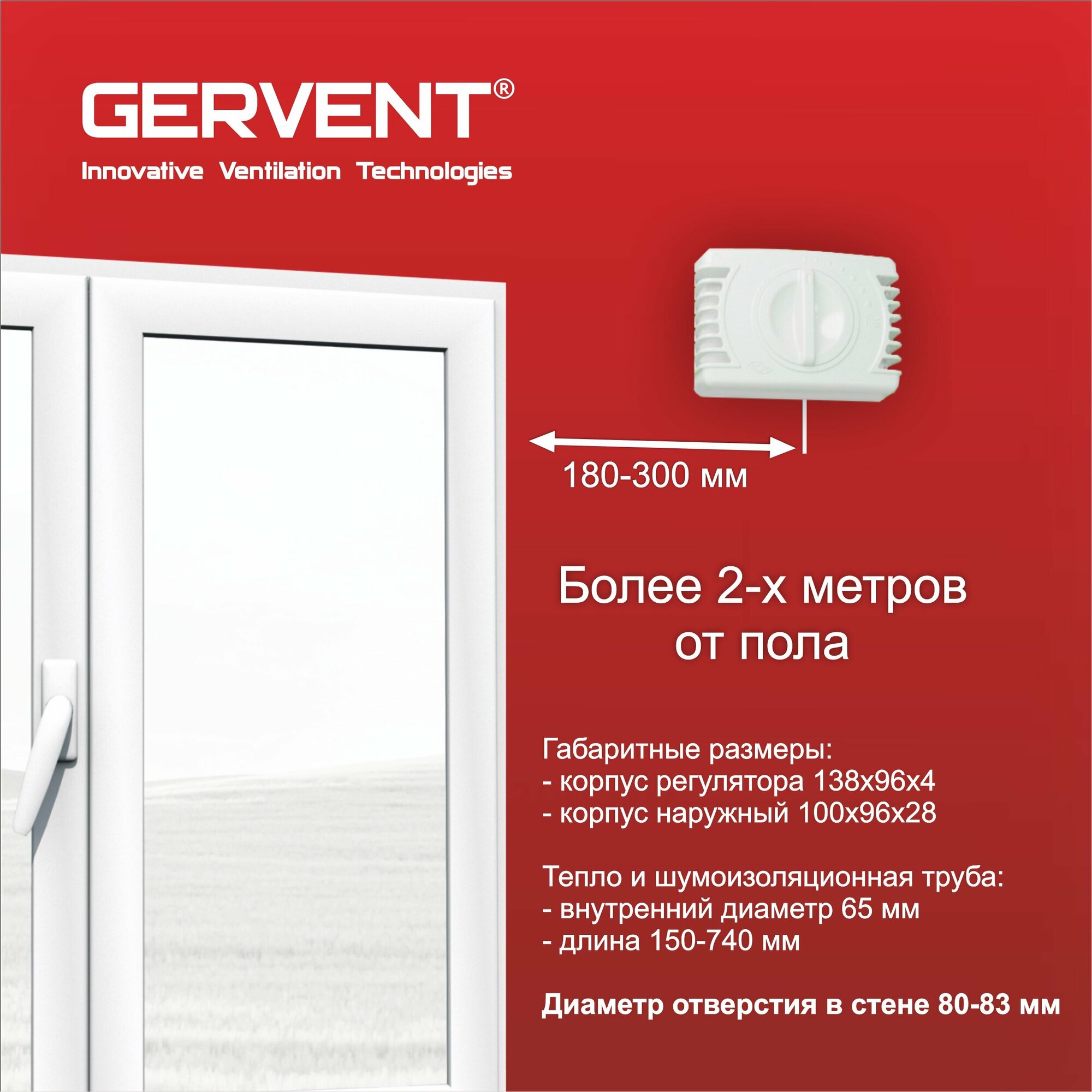 | Дополнительная информация | Корпус регулятора внутренний в сборе (корпус регулятора, регулятор, фильтрующий элемент, фланец внутренний) - 1 шт. Корпус регулятора наружный (фланец наружный, корпус наружный) - 1 шт. Тепло-шумоизоляционная труба - 68 см - 1 шт. Дюбель-гвоздь - 4 шт. |