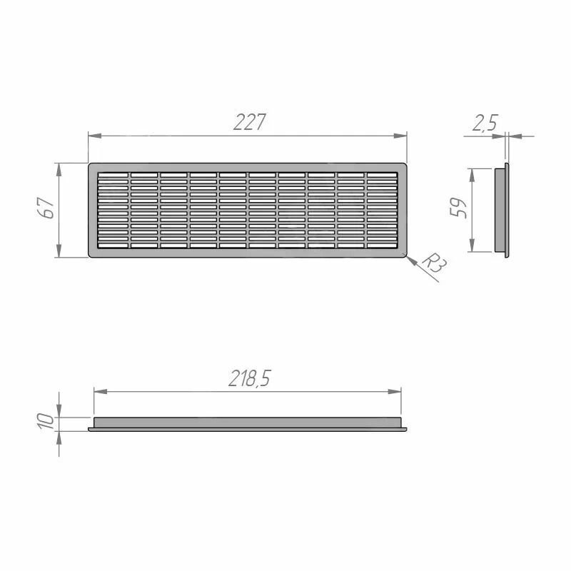 Решетка вентиляционная универсальная, 227x68 мм, пластик, алюминий серый, 1 шт