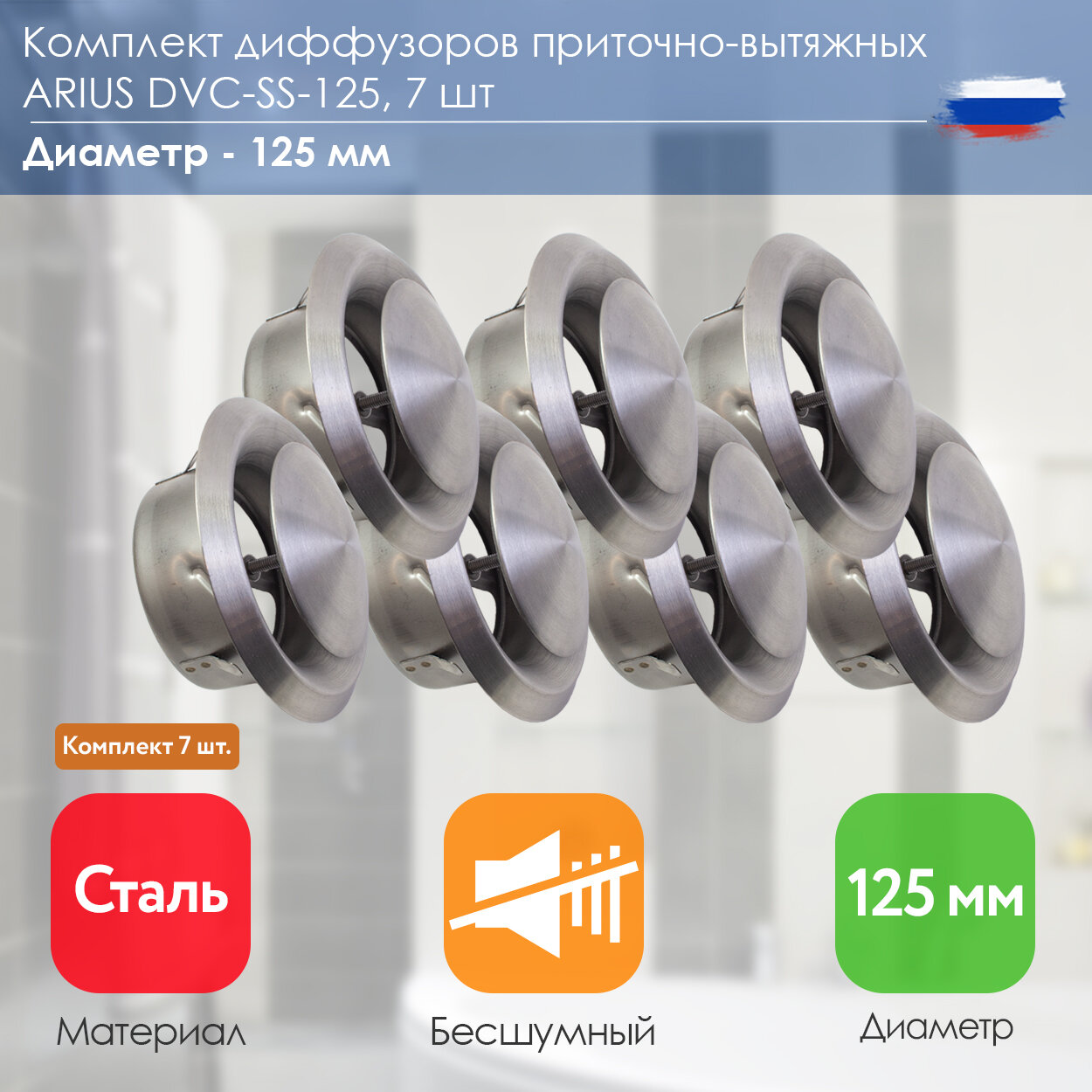 ARIUS Dvc-ss-125 комплект из 7-и шт. (135554) диффузор/анемостат приточно-вытяжной нержавеющая сталь, 125 мм