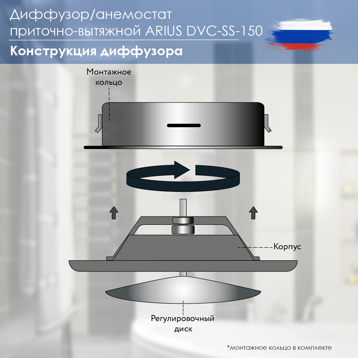 СохранитьКомплект 5 шт. Диффузор/Анемостат приточно-вытяжной нержавеющая сталь ARIUS DVC-SS-150 (арт. 135556), 150 мм интересное: