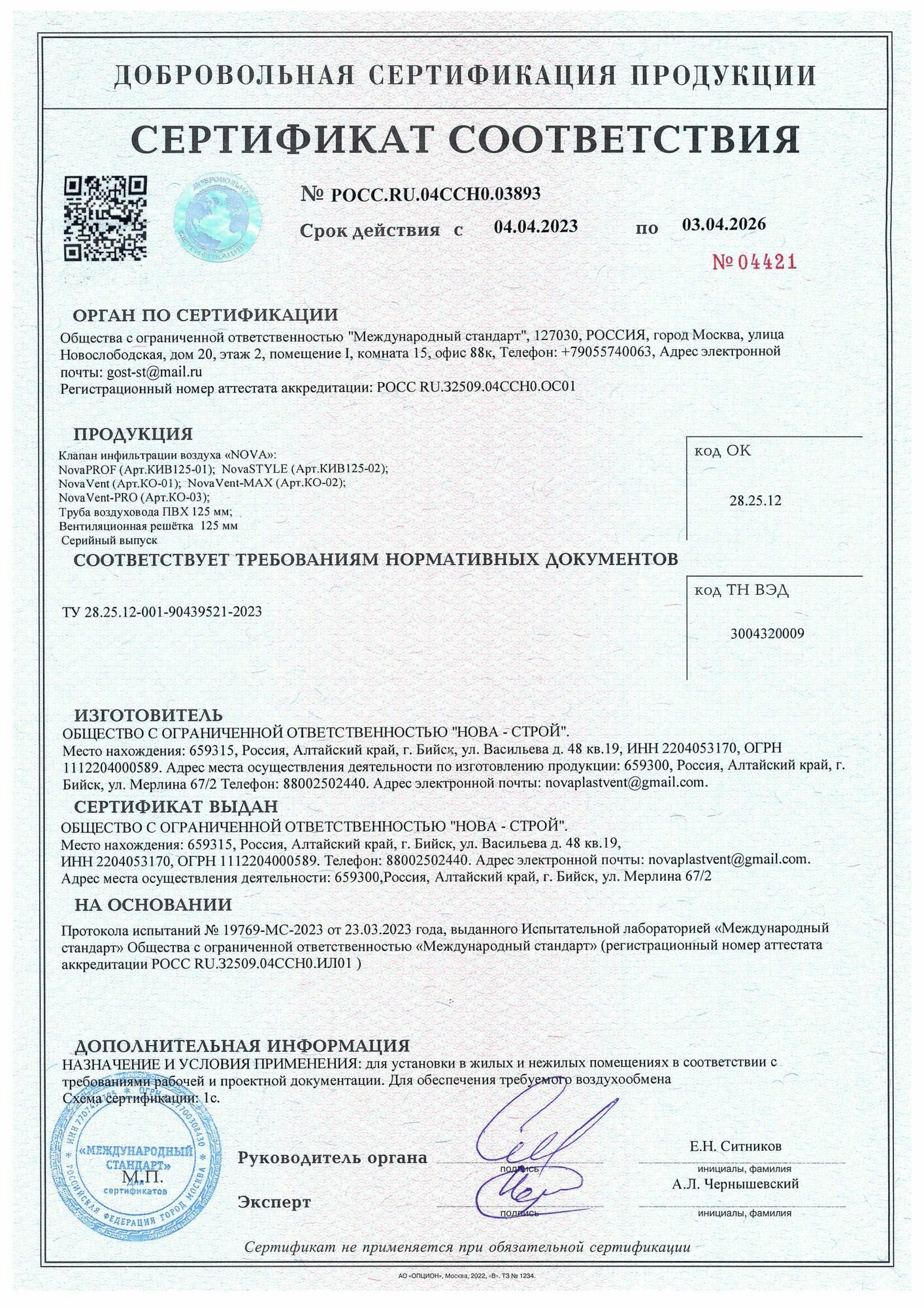 Приточный клапан NovaSTYLE КИВ-125, оголовок