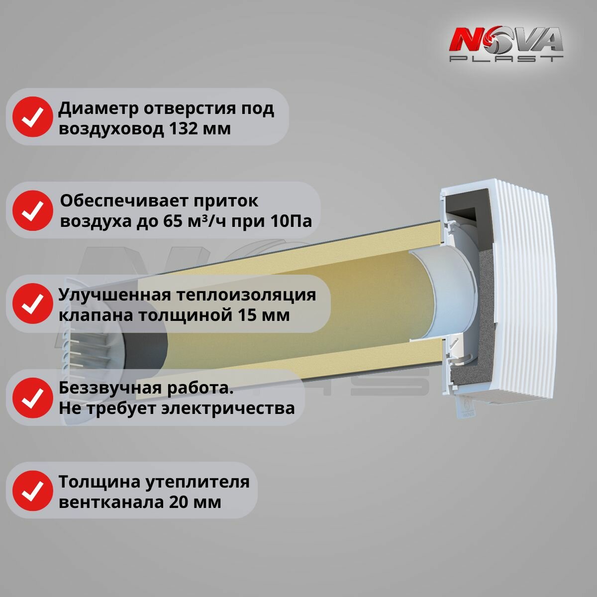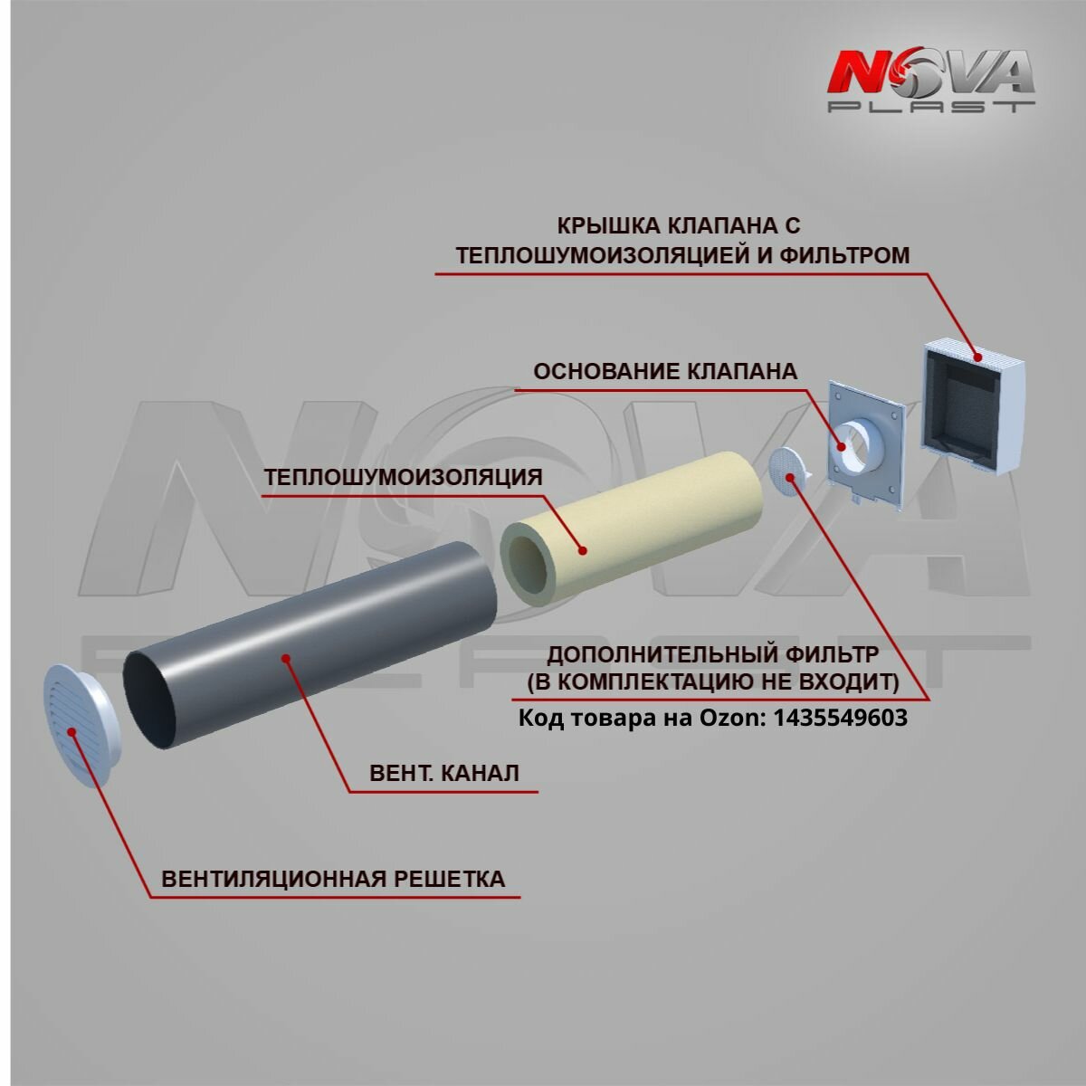 Приточный клапан вентиляции NovaSTYLE с 600 мм трубой, атмосферостойкой решёткой кив - 125, RAL 9016 интересное: