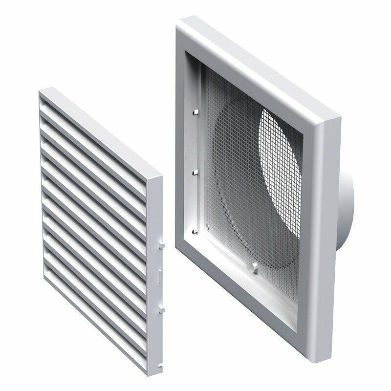 НАШ вент Решетка разъемная 154х154мм (МВ 100Вс) с фланцем d=100мм с москит. сеткой, пластик, белая интересное: