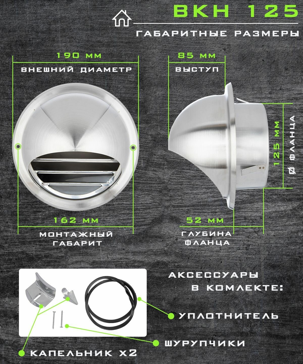 Вентиляционный колпак с решеткой и сеткой с фланцем 125 мм нержавеющая сталь интересное: