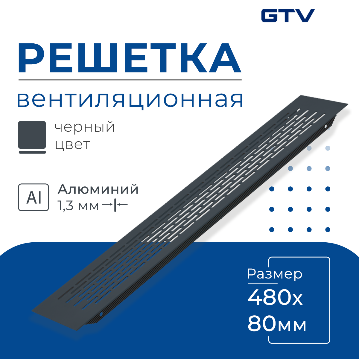 Вентиляционная решетка GTV, 80х480 мм, светлый антрацит