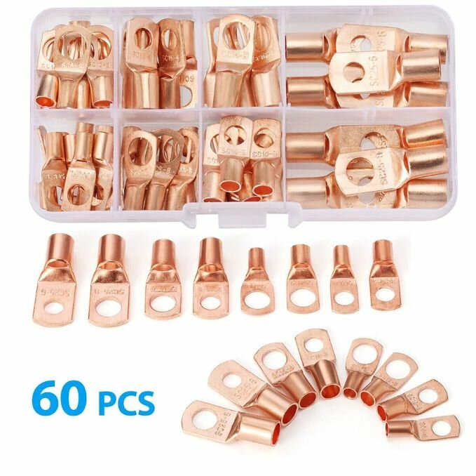 Обжимные медные клеммы типа SC 60 шт. / кольцевые медные наконечники в кейсе/ кабельные зажимы интересное: